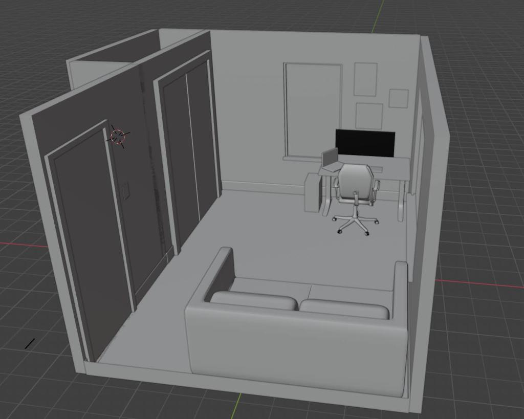 Using Blender was immensely helpful for making decisions with confidence. A friend (who is conveniently a pro interior designer) suggested moving the couch to the center of the window rather than wedged up against the same wall as the door. I was able to mock it up and validate that it looked much better in that position, and confirmed that the sofa bed would still allow movement with the Ikea Besta cabinets jutting out from the opposite wall. I also knew I wanted Eket cabinets above my desk, so I could confirm 3 cabinets would both fit and look suitable once painted to match the walls.