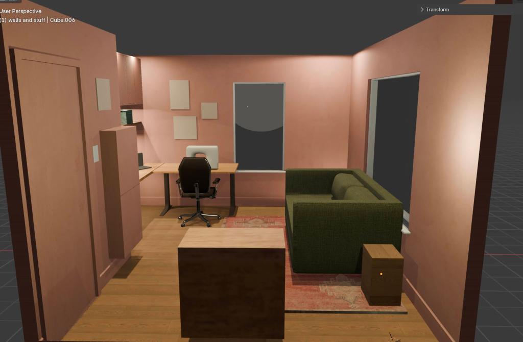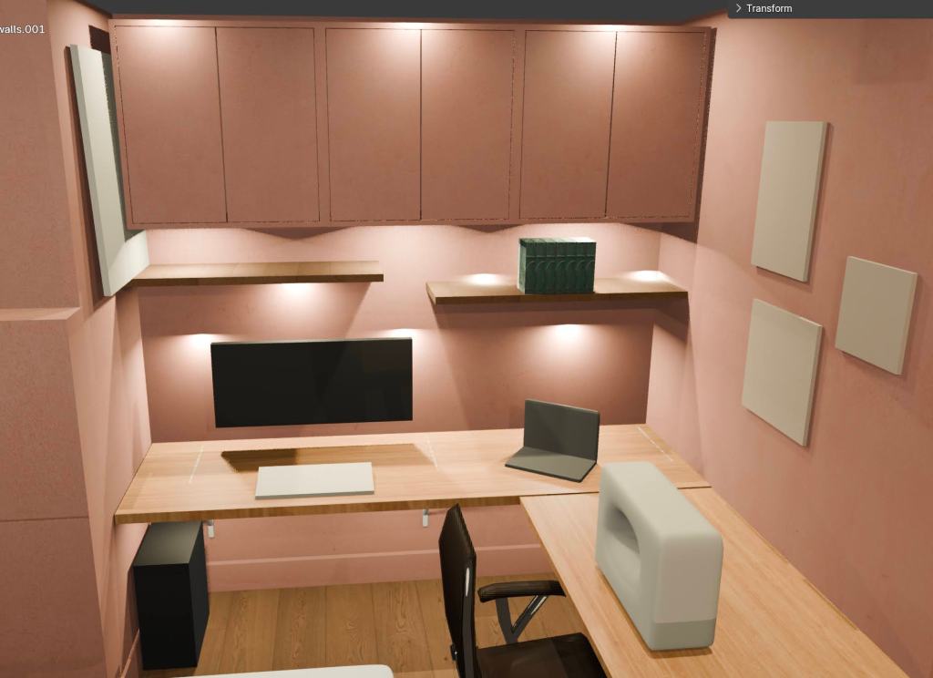 If I had to estimate how long this took, I probably clocked more than 20 hours in learning the basics in Blender for interior design, making the designs, and making the million tweaks I did along the way. I got frustrated and even bored sometimes when I couldn’t mockup an asset really quickly, or find a free model online, but after learning when I wanted to prioritize finer details versus when I just needed a quick validation for layout, it got much easier.